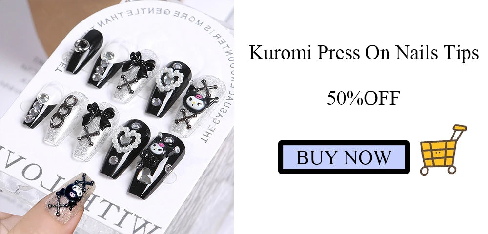 24Pcs Sanrio Blue Cinnamoroll Fake Nails Cute Anime Cartoon Kuromi My Melody press on False nails Fashion Nail Patches for Girls