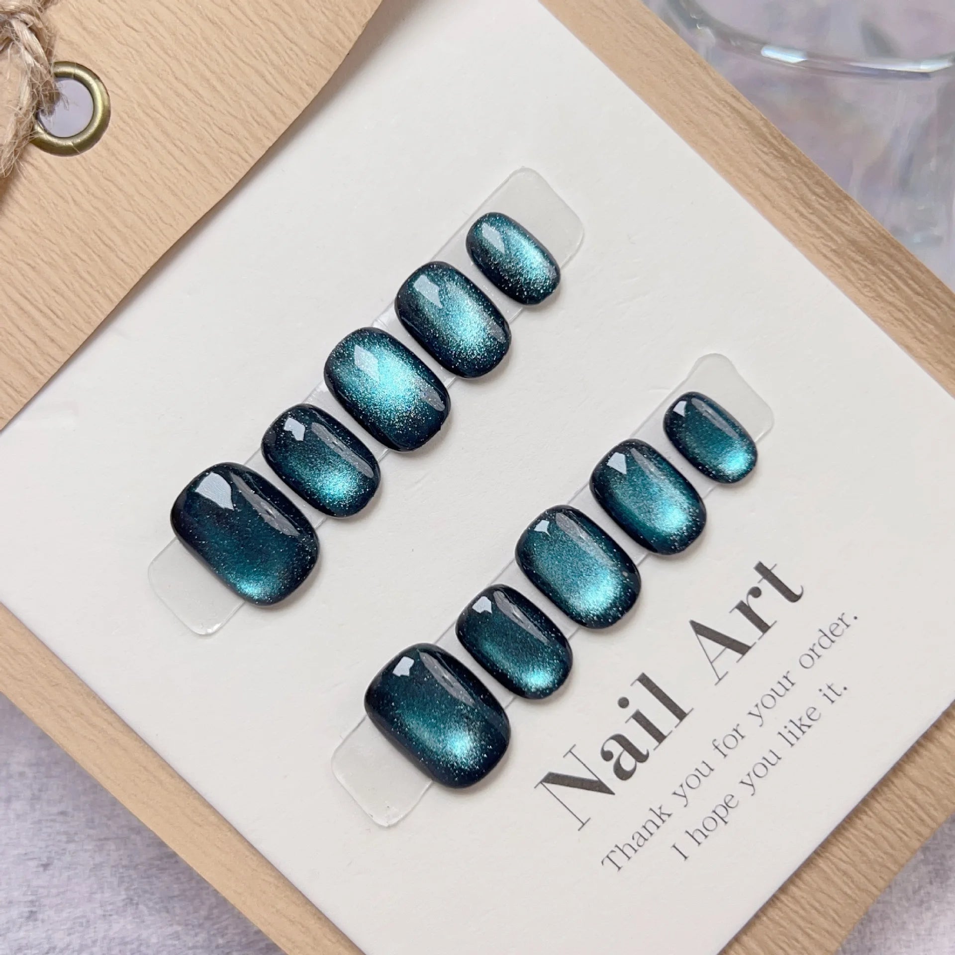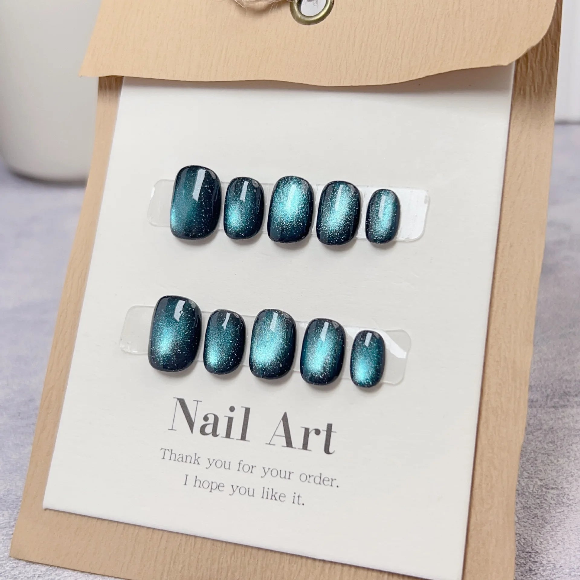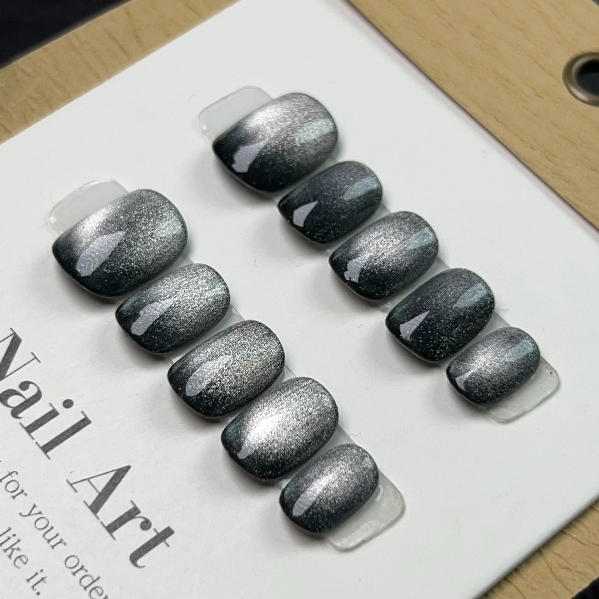 Handmade Cat-eye Press on Nails Short False Nails Full Cover Stick on Nail Tips Artificial Reusable Fake Nails for Women