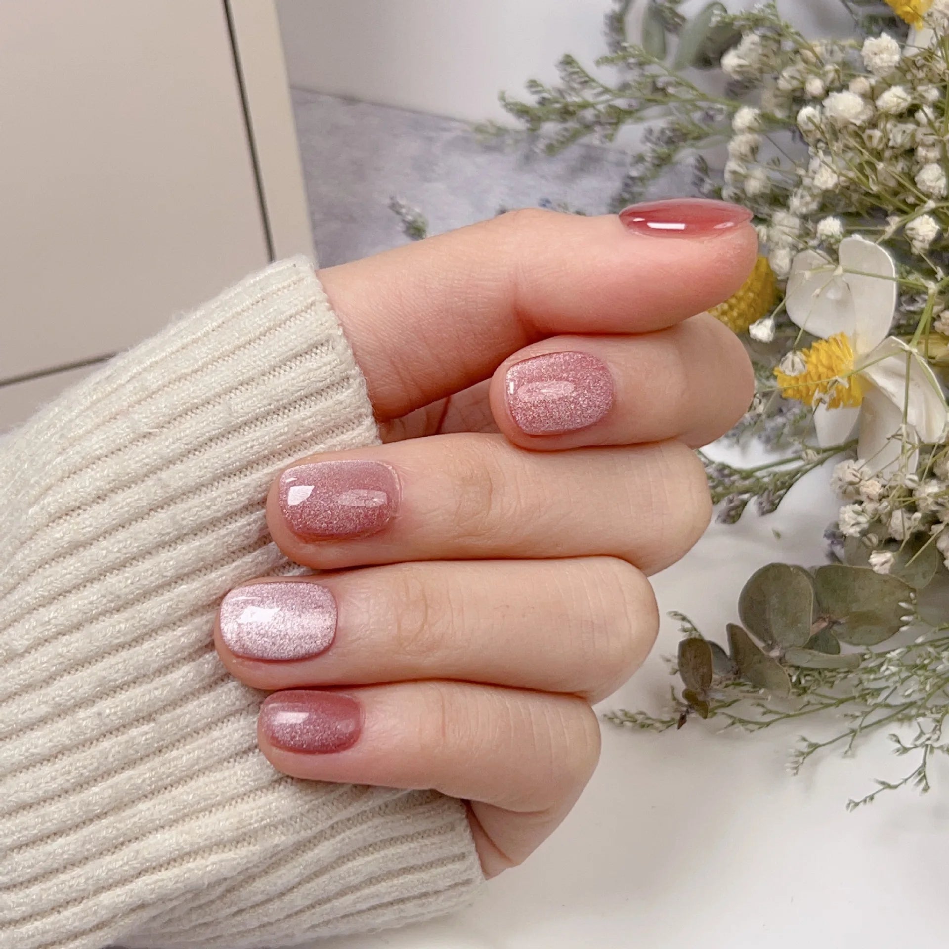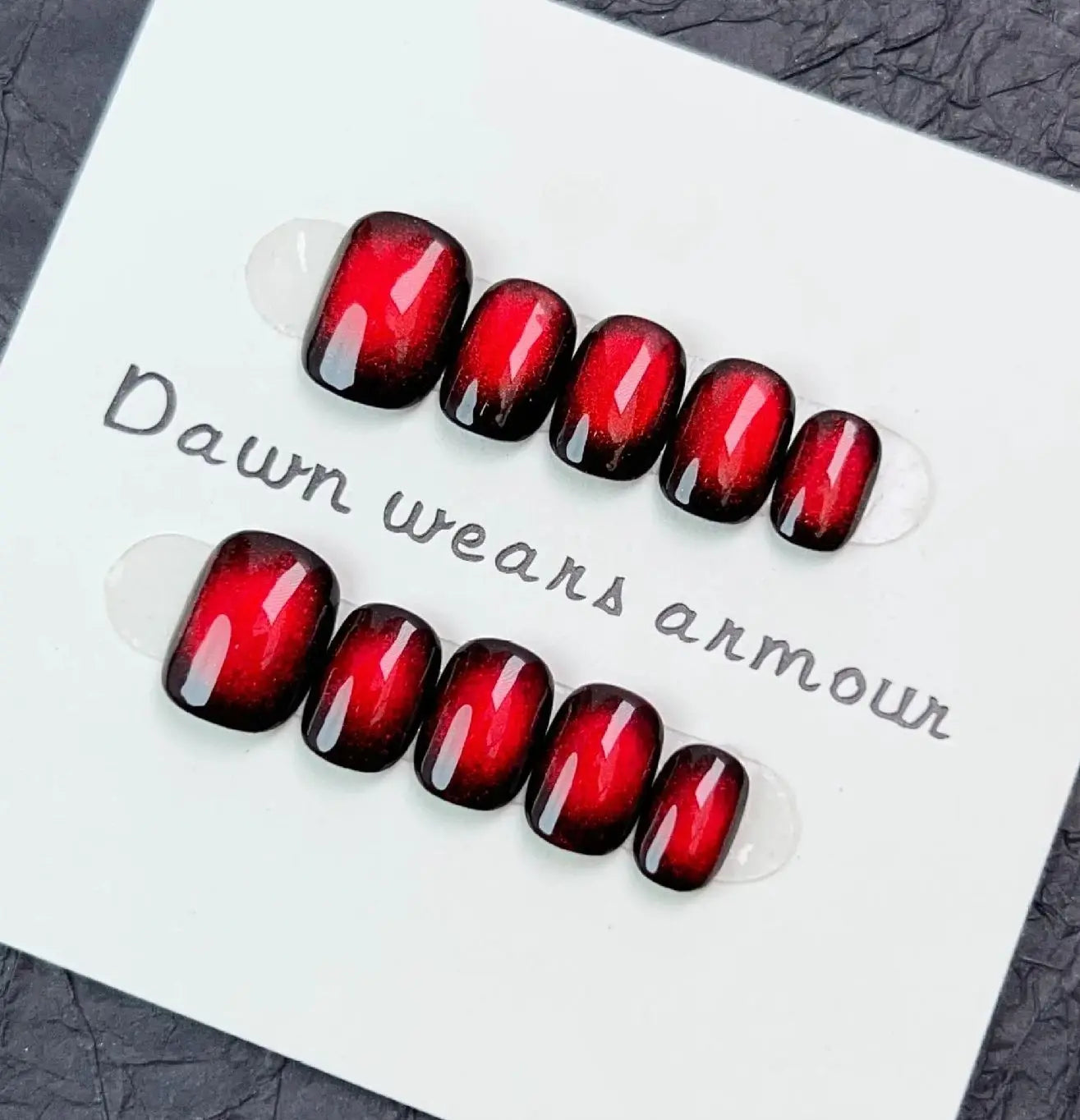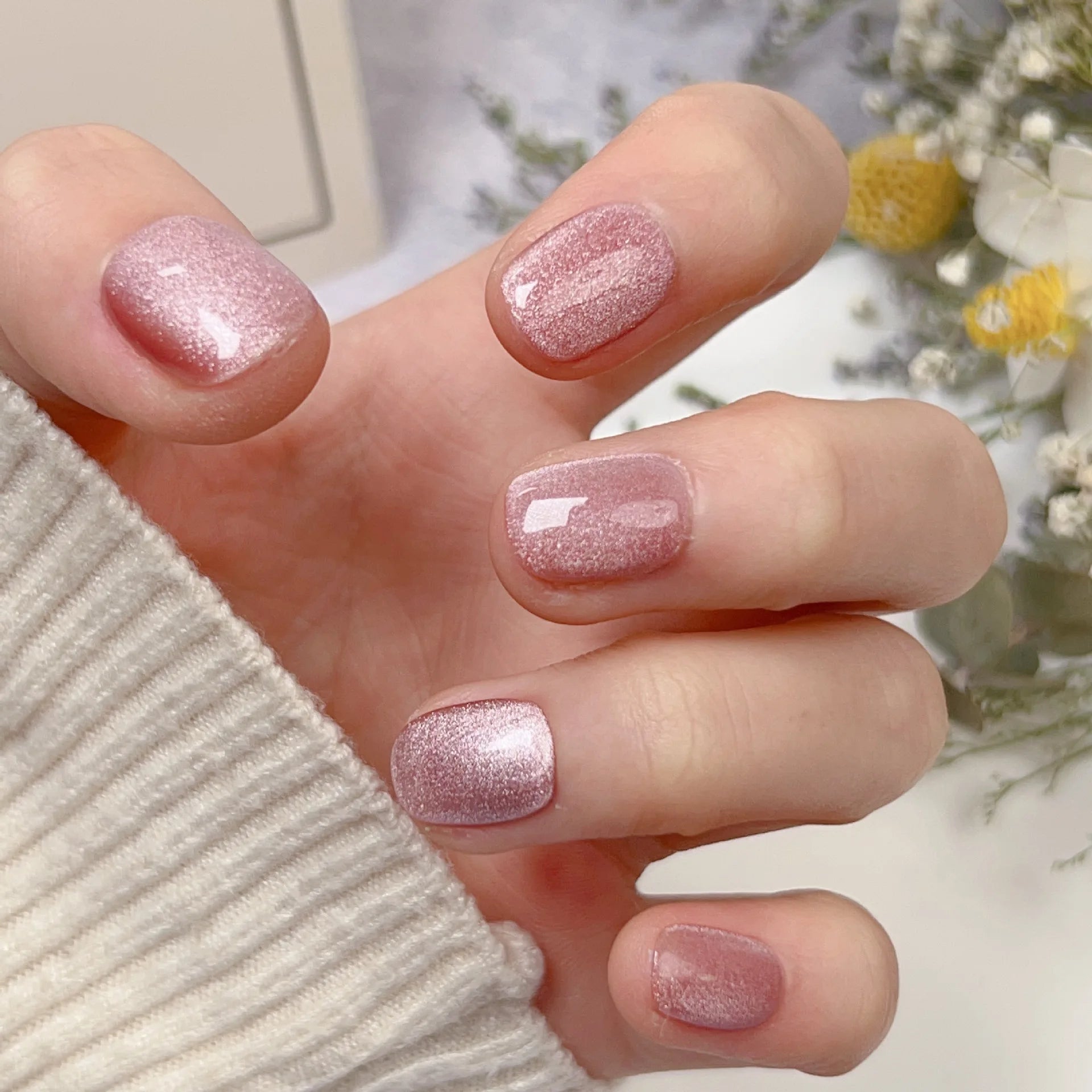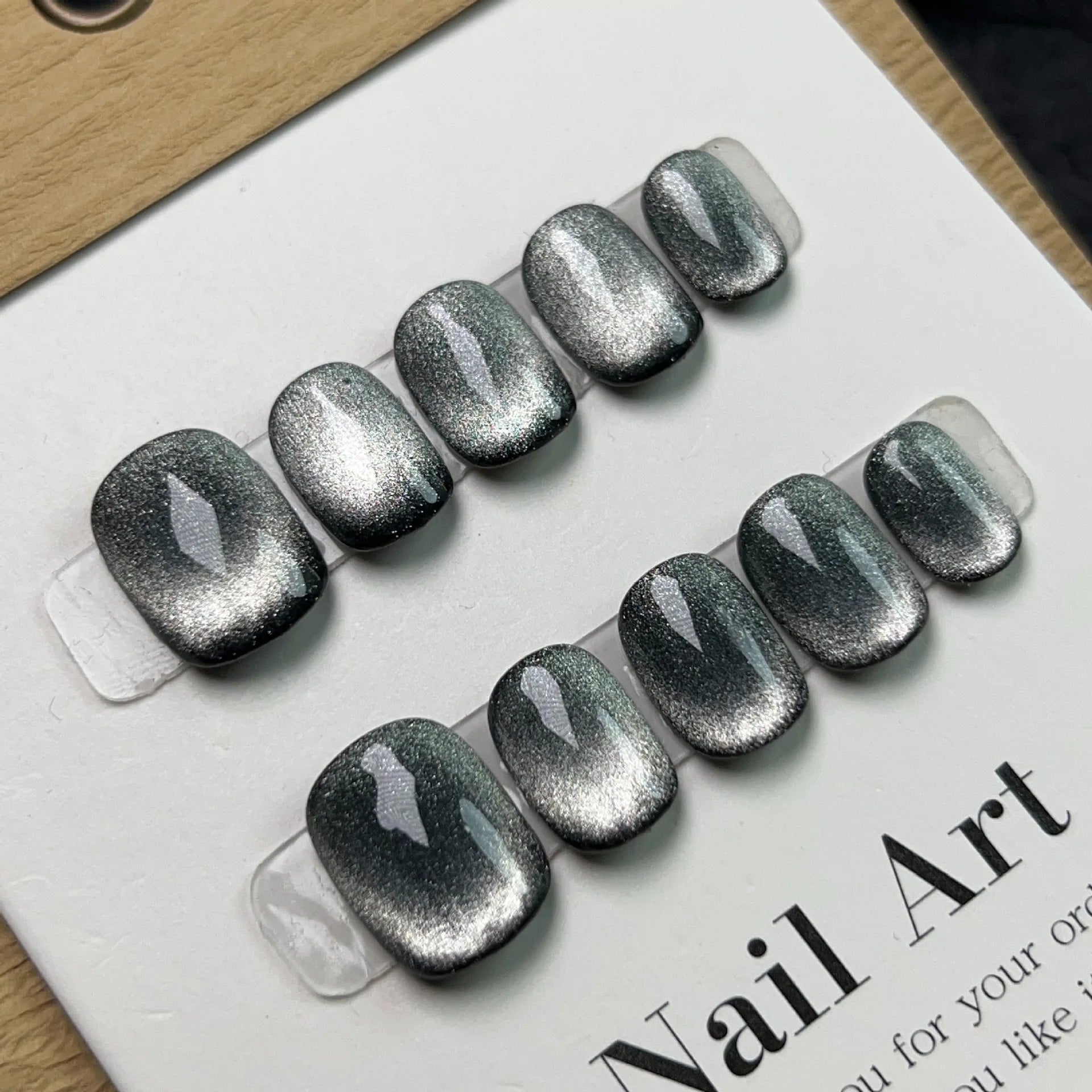 Handmade Cat-eye Press on Nails Short False Nails Full Cover Stick on Nail Tips Artificial Reusable Fake Nails for Women